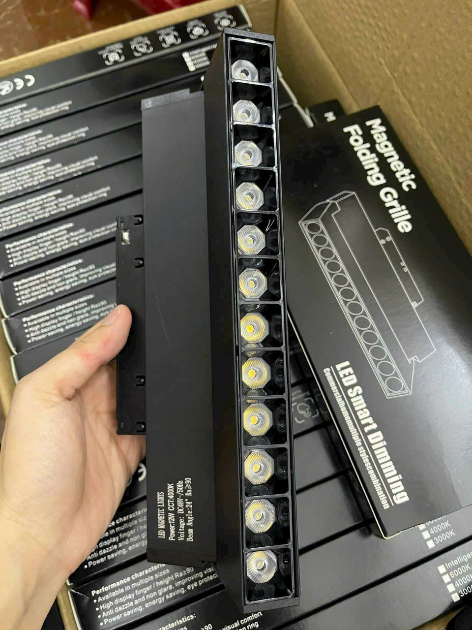 Đèn tiêu điểm nam châm có gập (còn gọi là đèn spotlight ray nam châm gập góc) là dòng đèn chiếu sáng cao cấp sử dụng hệ ray từ tính để lắp đặt và di chuyển dễ dàng. Thiết kế có khớp gập giúp bạn dễ dàng điều chỉnh góc chiếu theo nhu cầu – làm nổi bật sản phẩm, tranh ảnh, đồ nội thất, hoặc các điểm nhấn kiến trúc.